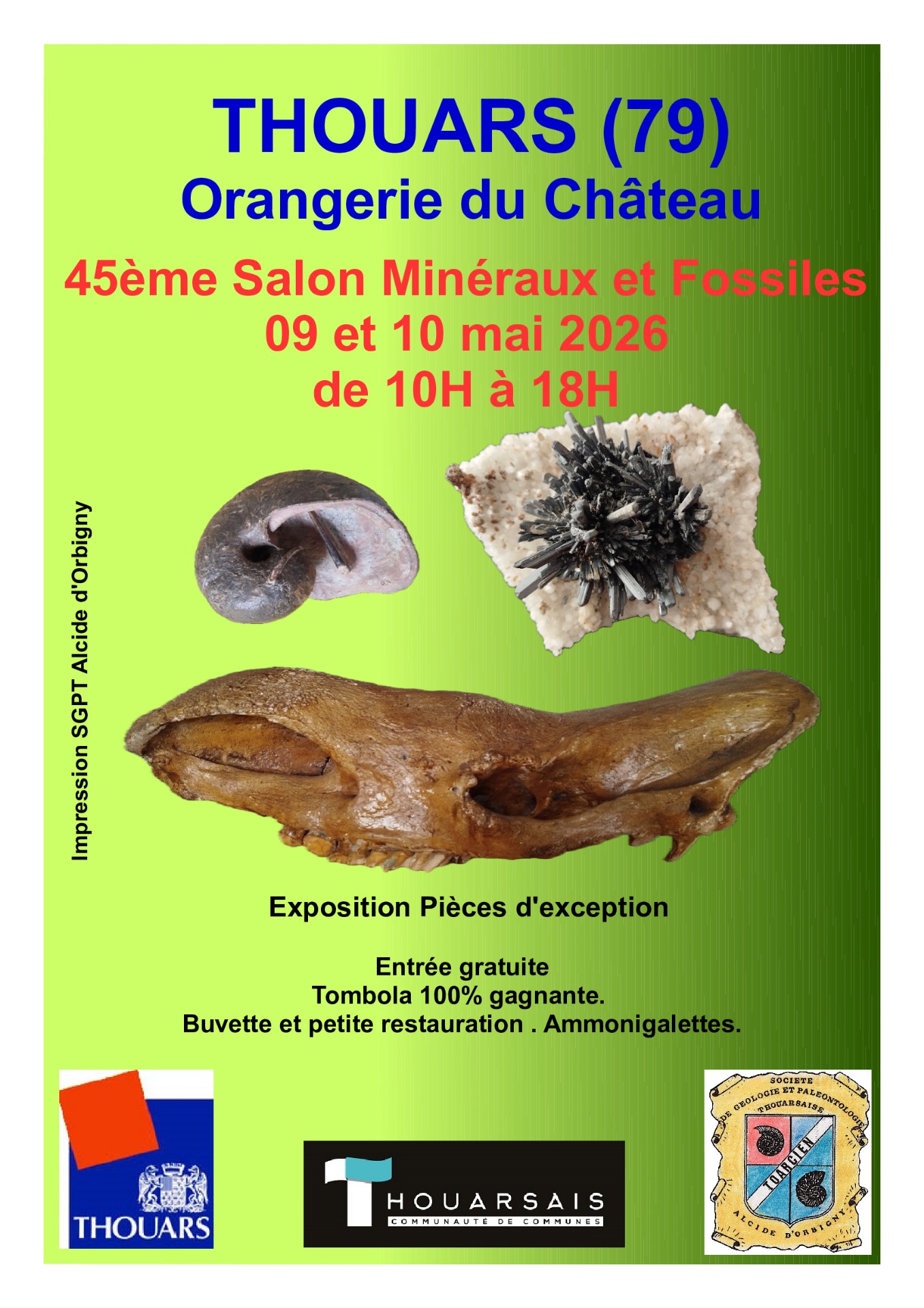 | THOUARS (79100 - Deux-Sèvres) 46 ème Exposition-Bourse-Salon minéraux et fossiles / Orangerie du château de Thouars / Je serai présente à ce salon / 03 Mai et 04 Mai 2026 |