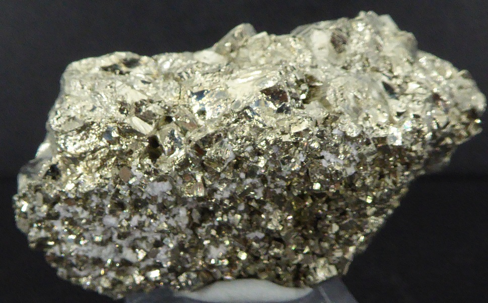 | Description : | Bonne pièce de pyrite cubique montrant des troncatures complexes et des striures sur les faces. Les cristaux sont très brillants à éclat métallique. Les plus grands mesurent 0,8 cm. |