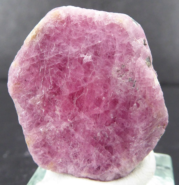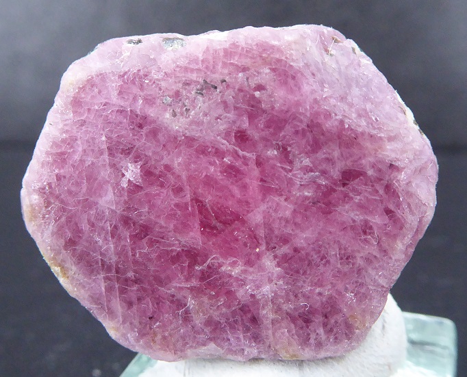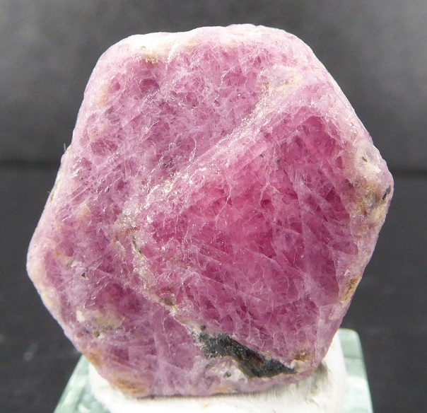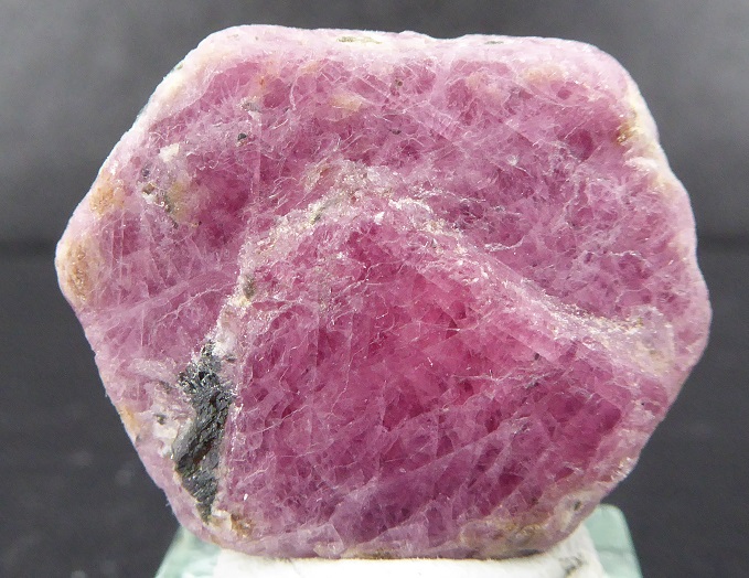 | Description : | Beau cristal de rubis hexagonal, tabulaire et d'une belle couleur rouge. Un peu de phlogopite (mica) se trouve inclus dans le rubis. |