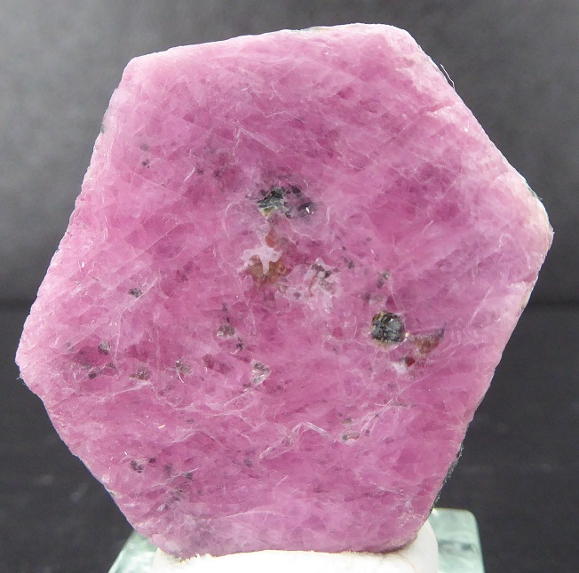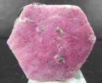 | Description : | Beau cristal de rubis hexagonal, tabulaire et d'une belle couleur rouge. Un peu de phlogopite (mica) se trouve inclus dans le rubis. |