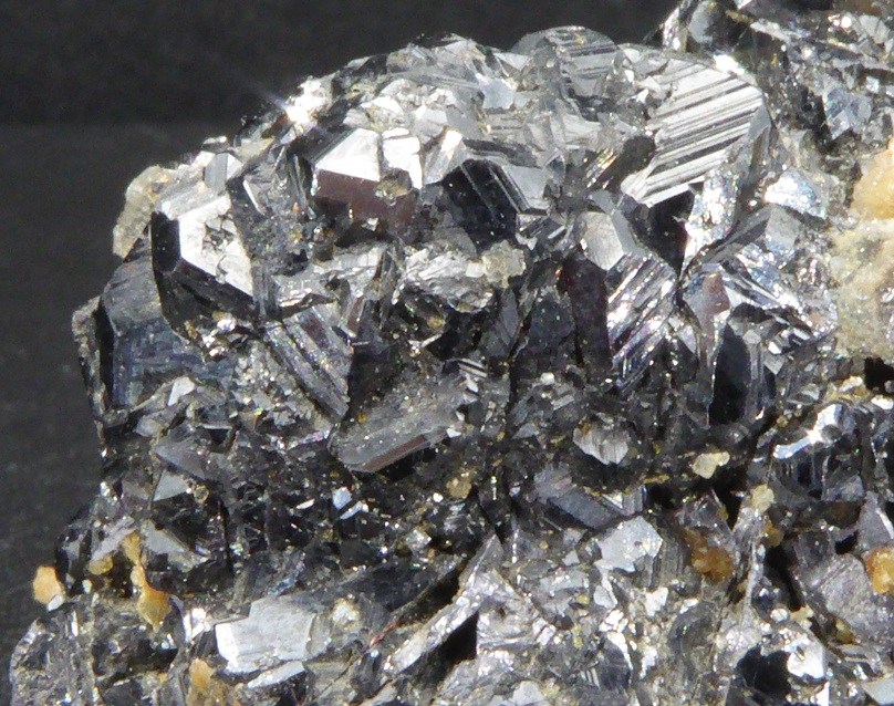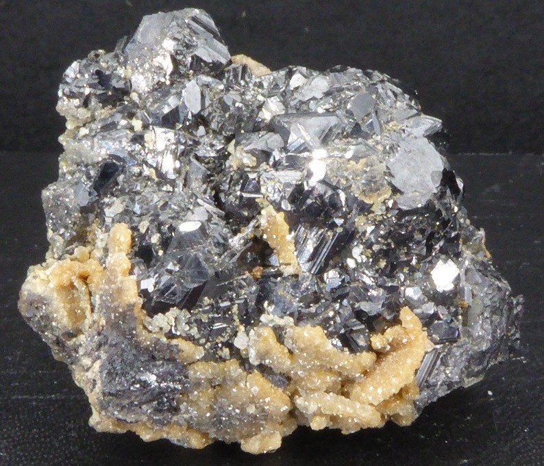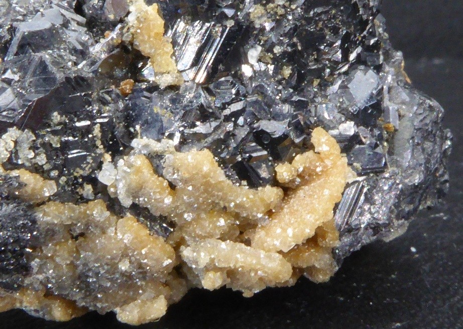 | Description : | Bel agrégat de cristaux noirs de sphalérite. Le cristaux les plus grands mesurent 0,8 cm. Ils sont parfaits et brillants. Un peu de dolomie de couleur brune se trouve sur la sphalérite. |