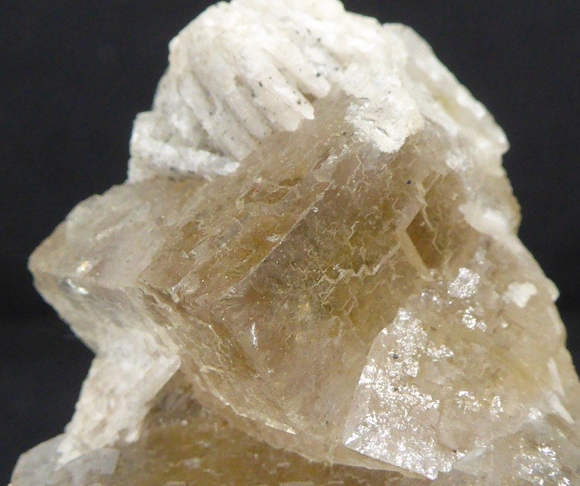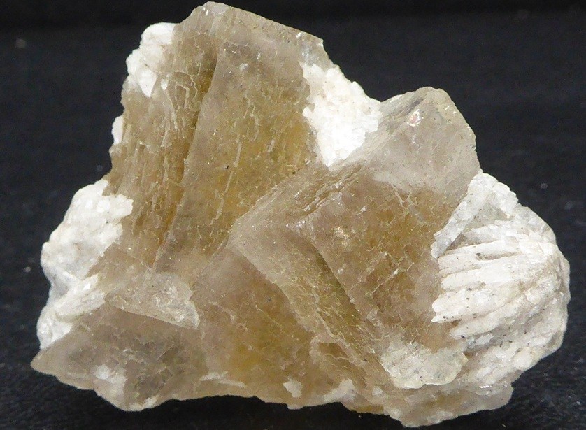 | Description : | Bonne pièce montrant deux cristaux de fluorite translucide dont l'arête la plus grande mesure 2,4 cm. Un peu de baryte blanche se trouve sur la fluorite. |