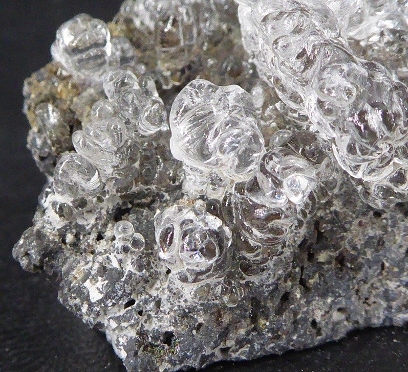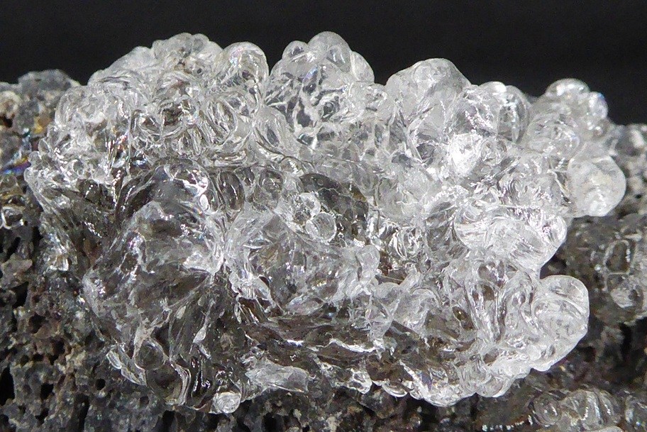 | OPALE (variété Hyalite) Tarcal, Monts Zemplén, Borsod-Abauj-Zemplén Co., Hongrie / Belle pièce de cette rare variété d'opale nommée Hyalite. La cristallisation est curieuse (botryoïdal globuleuse) et transparente. Elle montre une belle fluorescence verte sous les U. V. courts. | Disponible |