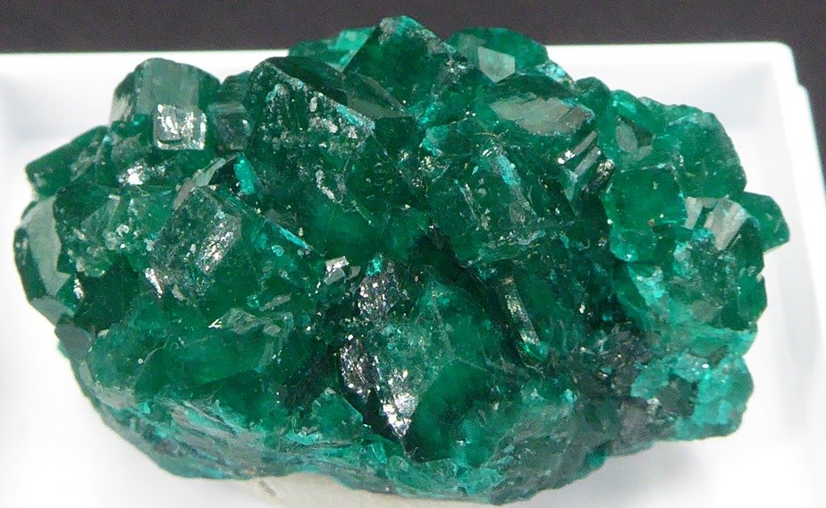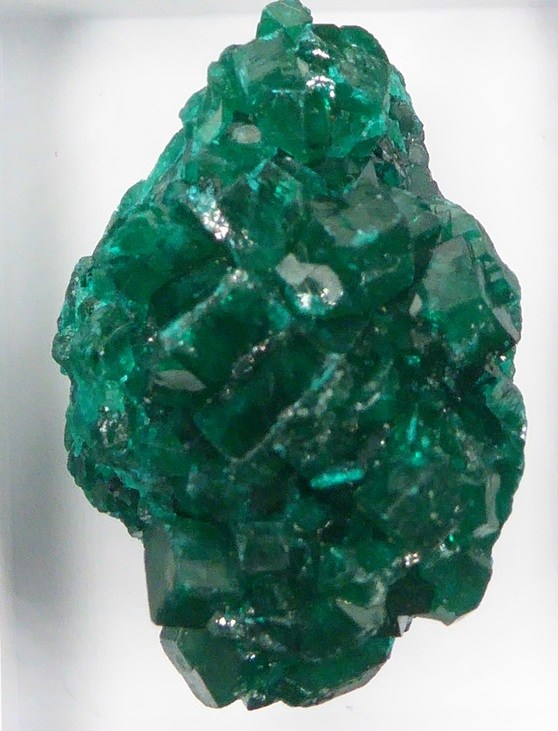 | Rajout Décembre 2025 / DIOPTASE / Mine Tantara, Shinkolobwe, Katanga, R. D. du Congo / Bel échantillon de dioptase d'un beau vert brillant. Les cristaux mesurent 0,4 cm pour les plus grands. Livrée dans une boite plexi. | Disponible |