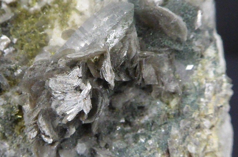 | Rajout Mars 2026 / QUARTZ, EPIDOTE, MICA / Vallée d'Ossola Piémont, Italie / Bonne pièce composée de cristaux de quartz hyalin de 0,8 cm pour les plus grands, de mica en feuillets de 0,3 cm et de fins cristaux d'épidote. | Disponible |