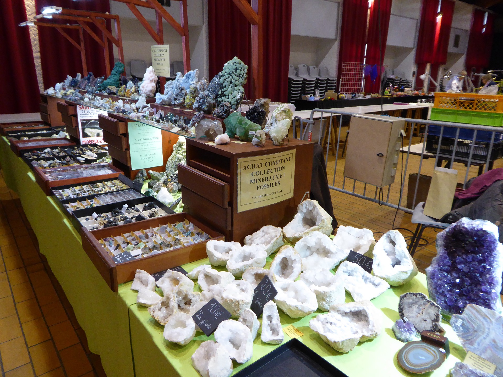 Dans l'espace "échange" , 12 collectionneurs ont présentés leurs échantillons minéralogiques et paléontologiques en double. Les échanges ont été fructueux dès le samedi matin. Un des participants aux échanges s'était déplacé de Savoie.
