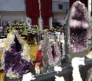 La dernière montre de belles tranches de porcelainite des houillères embrassées de L'Aveyron et des tranches d'améthyste auvergnate. l'exposant les a scié et poli lui même.