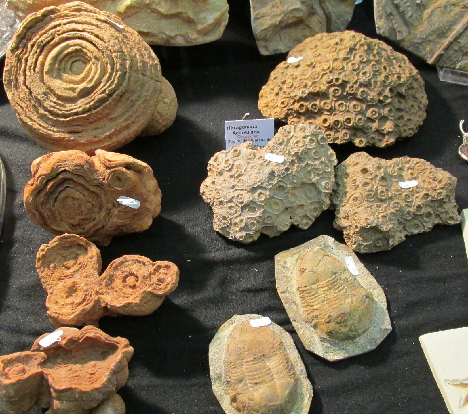 Sur le stand de Noël Gaudefroy, une belle ophiure, des stromatolithes, des coraux et des trilobites étaient proposés (photo I et II).