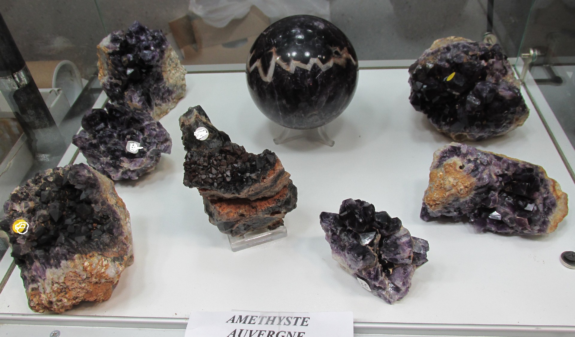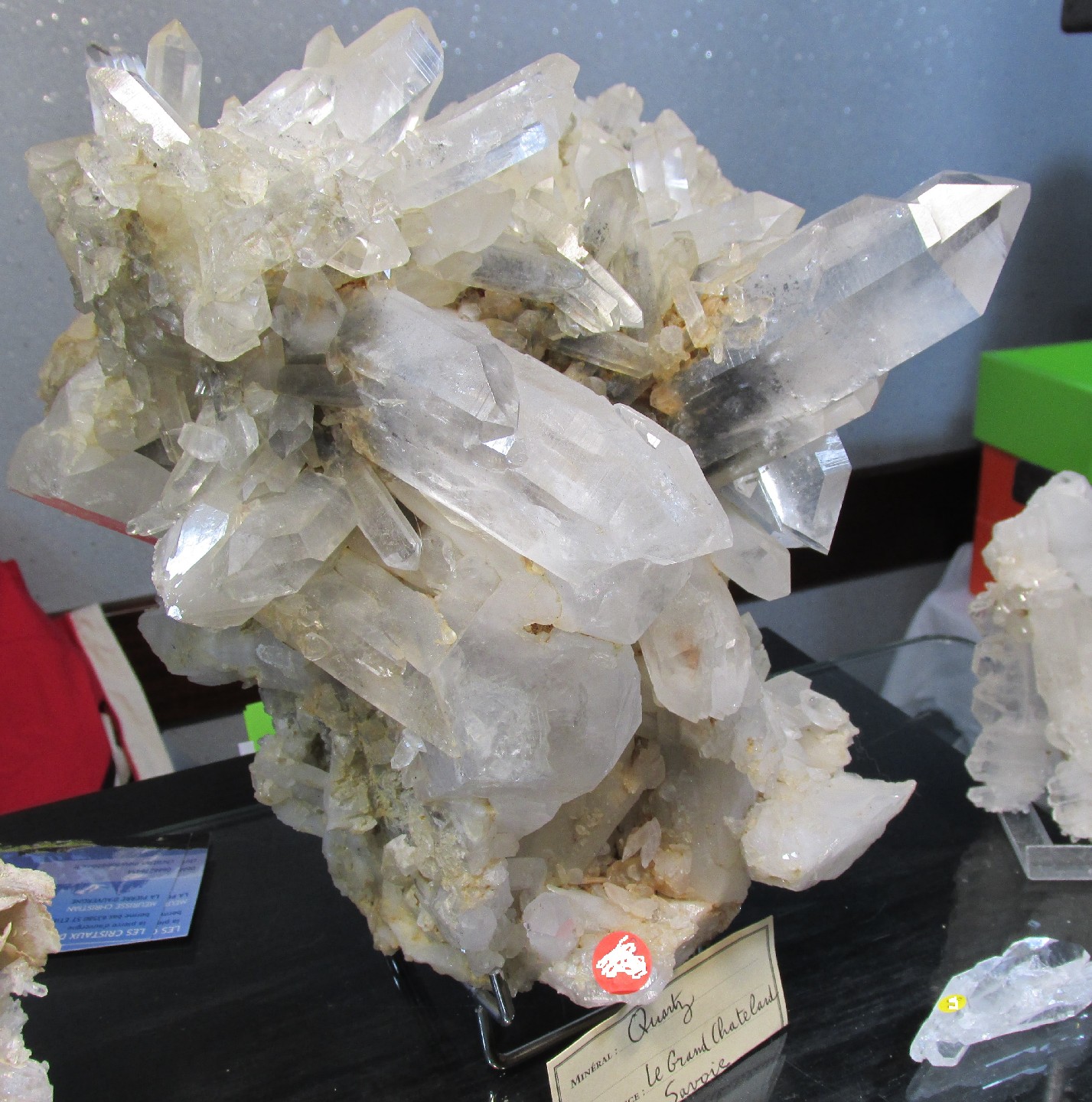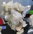 Christian Meurisse proposait un magnifique quartz provenant du Grand Châtelard, Savoie (cette pièce a obtenu la coupe du plus beau minéral). Quelques pièces d'améthyste d'Auvergne provenant de sa collection et d'une récolte ancienne de fluorite du Tarn (récolte personnelle) (photo II, III et IV). |