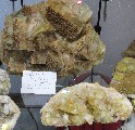 Luis Gopladas présentait un joli lot de pentagonite provenant de la carrière de Whagoli en Inde (photo IV). |