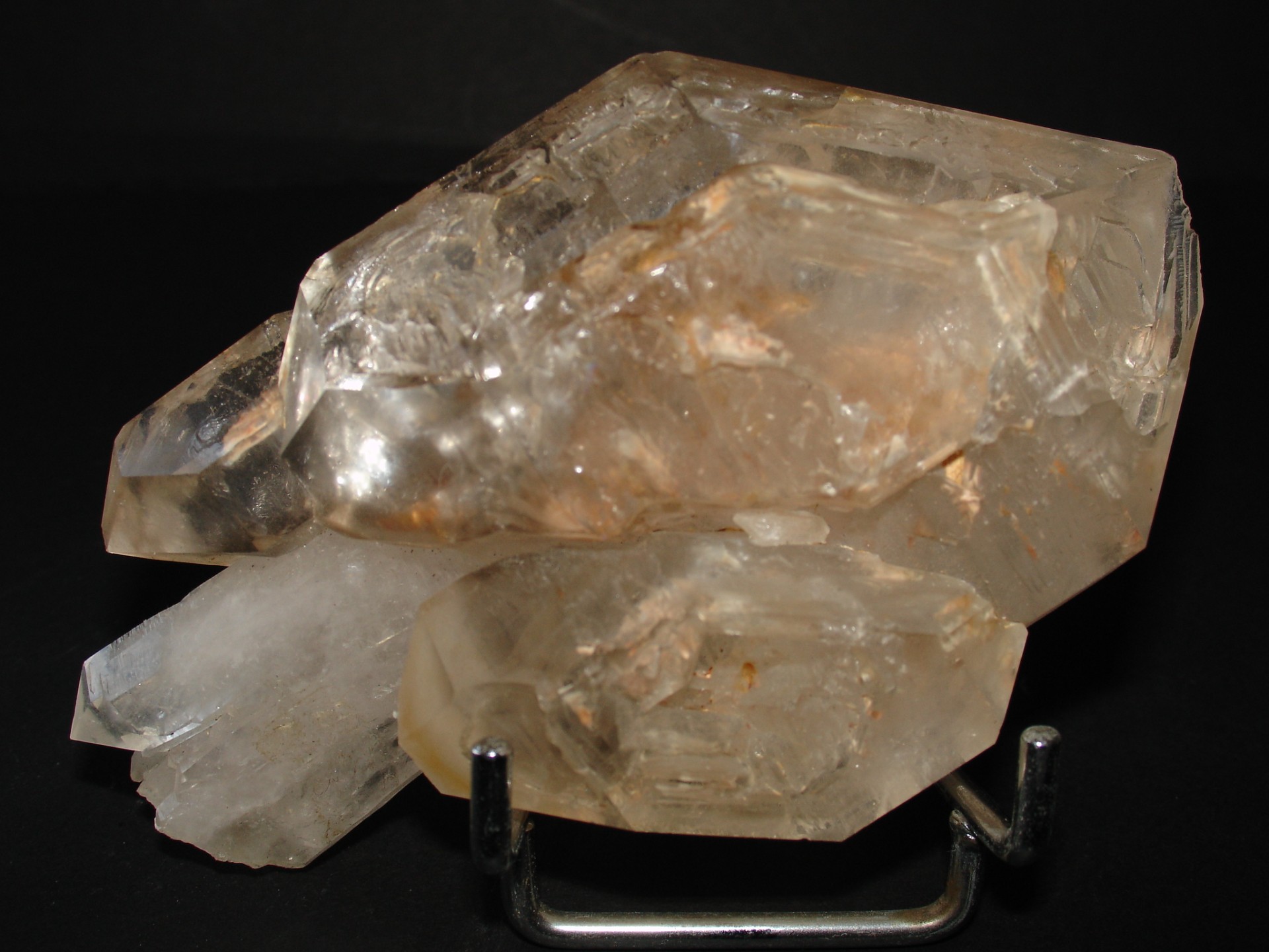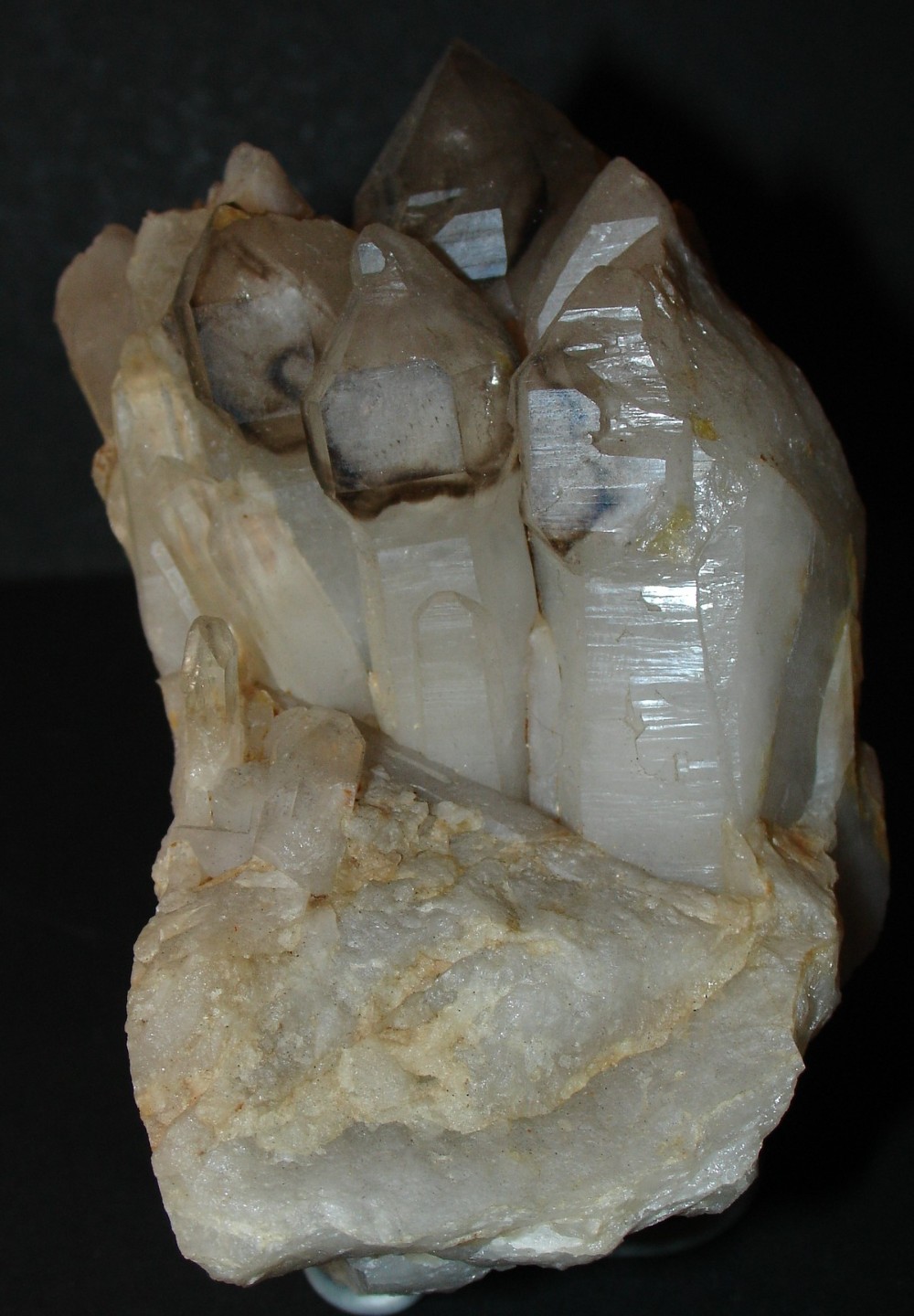 Photo I : ce beau monocristal biterminé provient de la mine Dodo, Oural, Russie (collection C.Garon). Photo II : J'ai récolté e quartz scpetre fumé dans la carrière de quartzite du Dorat en Haute Vienne, France (collection C.Garon). Photo III : ce quartz sc ptre biterminé provient de Gourama, Maroc (collection C.Garon). Photo IV : cet échantillon ancien provient de "Champ Totet Vieux", La Rangereuse près de Saint Malo du Bois, Vendée, France (collection C.Garon).