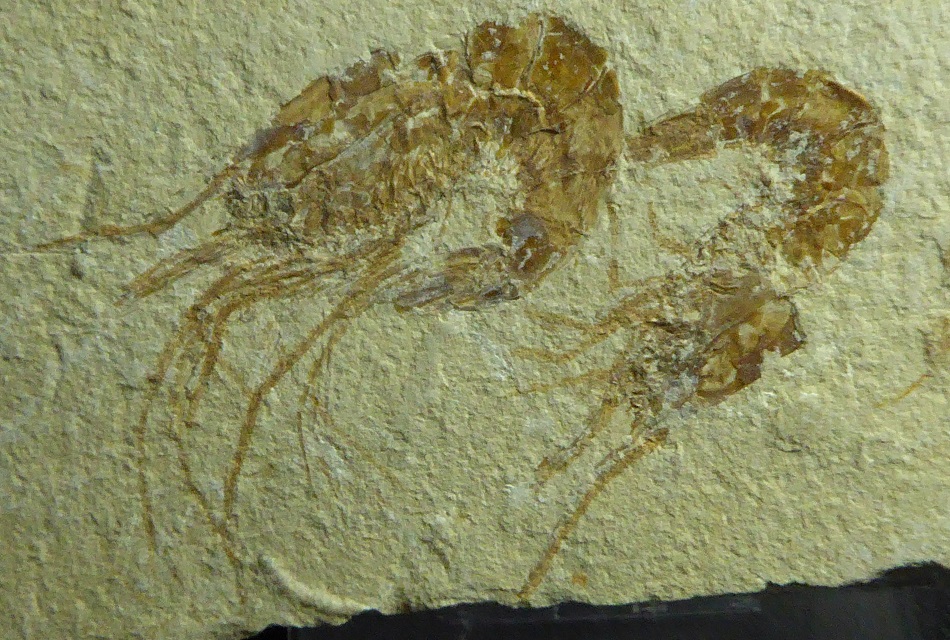 | Description : | Belle plaque montrant 2 crevettes fossiles dont la plus grande mesure 3 cm. |