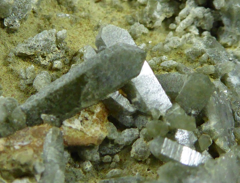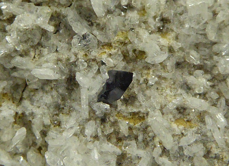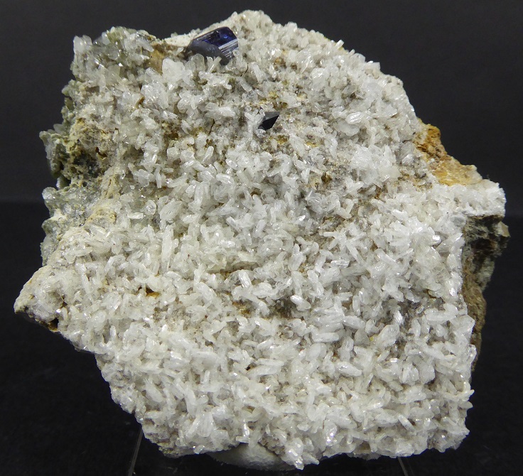 | Anatase, albite, quartz / Monts Zard, District de Kharan, Province du Baloutchistan, Pakistan / Belle pièce composée de 2 cristaux d'anatase bleutée. Le plus grands mesurent 0,4 cm. Ils reposent sur de l'albite gemme avec un éclat nacré. Les cristaux d'albite sont maclés. Au dos se trouvent quelques quartz chloriteux de 0,7 cm pour les plus grands. | Disponible |