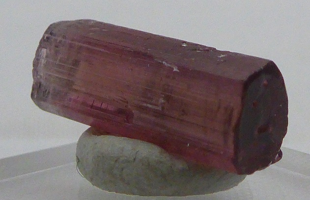 | Tourmaline / District de Betafo, Région de Vakinankaratra, Province d’Antananarivo, Madagascar / Très belle tourmaline biterminée rose violine de 1,6 cm de hauteur montrant deux belles terminaisons. | Disponible |