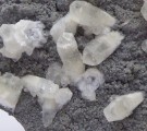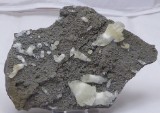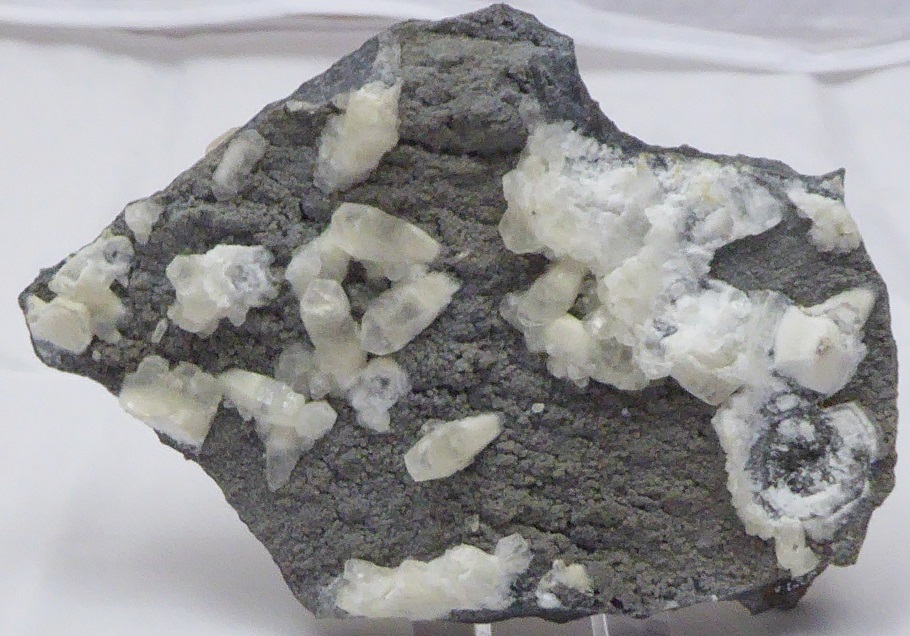| Description : | Curieuse cristallisation de calcite blanche, transparente à translucide, montrant des scalénoèdres tronqués et parfois biterminés. Les plus grands mesurent 3 cm. La pièce est cristallisée des deux cotés. Au dos, des cristaux sont clivés. |