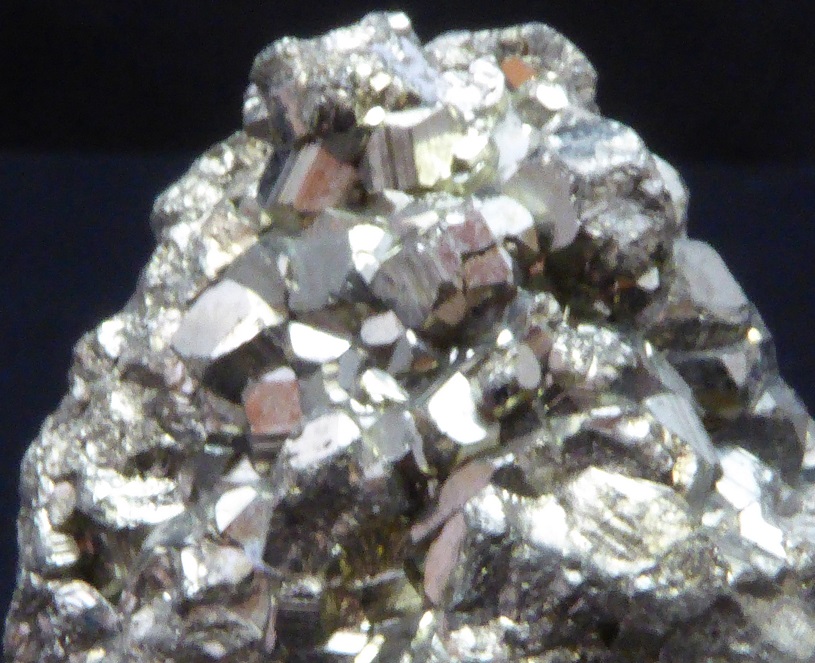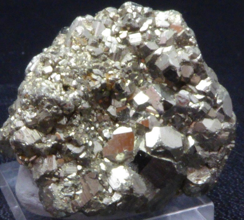 | PYRITE / Mine de Huanzala, district de Huallanca, Ancash, Pérou / Bonne pièce de pyrite cubique montrant des troncatures complexes et des striures sur les faces. Elles sont très brillantes à éclat métallique. Les plus grands mesurent 0,5 cm. Quelques cristaux sont érodés sur le coté. | Disponible |
