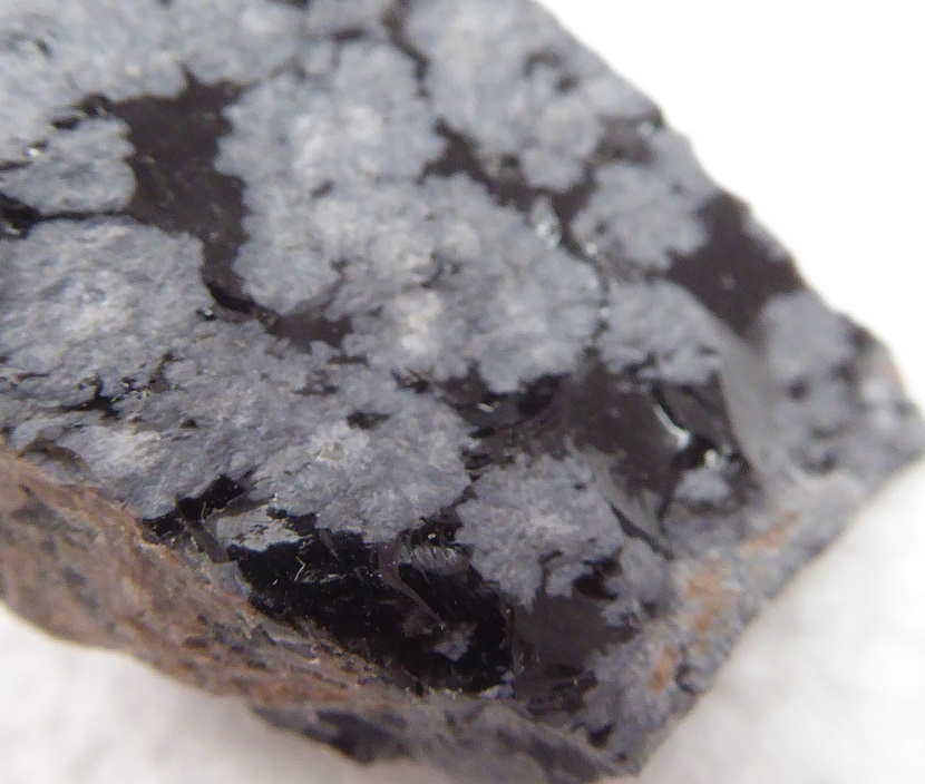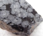 | OBSIDIENNE mouchetée / Black Spring, désert des roches noires, Millard Co., Utah, USA / Belle pièce montrant des mouches blanche dans de l'obsidienne noire. Ces mouches sont composées de cristobalite. | Disponible |