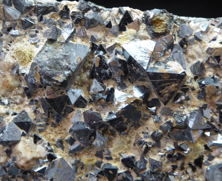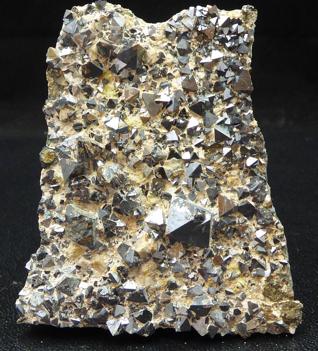 | MAGNETITE / Cerro Huanaquino, département de Potosi, Bolivie / Très belle cristallisation octaédrique de magnétite. Les cristaux sont gris noirs à éclat métallique. Les faces sont brillantes. Les plus grands mesurent 1 cm. Quelques cristaux sont clivés. | Disponible |