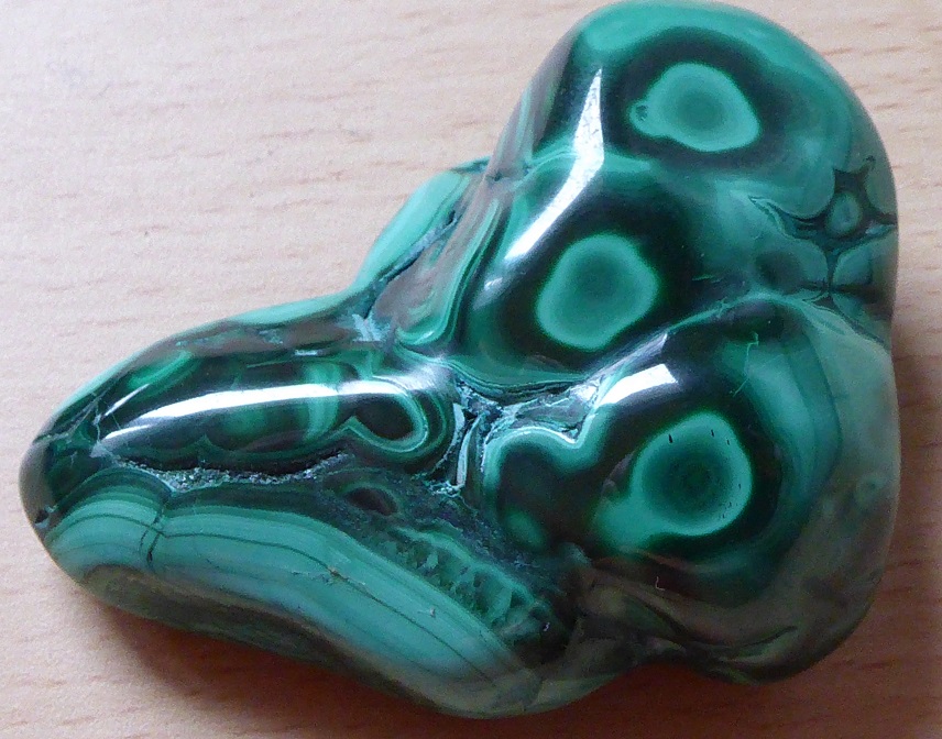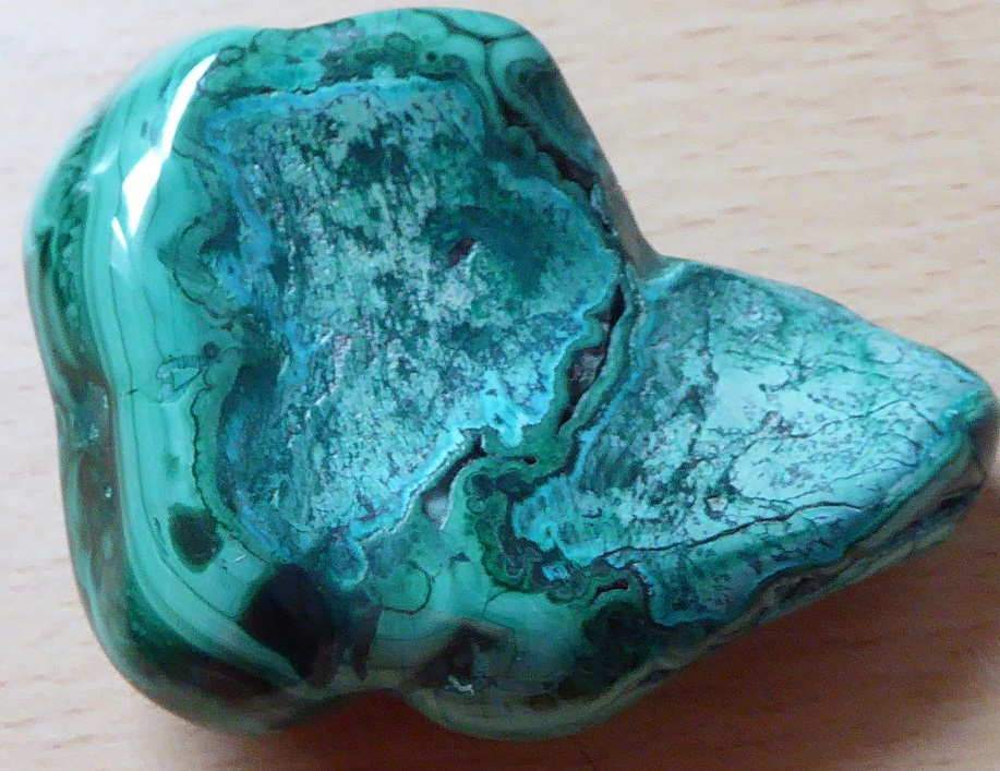 | MALACHITE / Kolwezi, district minier du Katanga, R. D. du Congo / Superbe échantillon de malachite polie montrant des zonations de divers dégradés de vert. | Disponible |