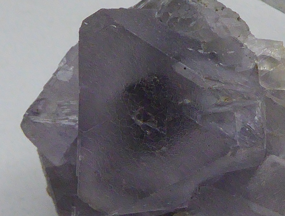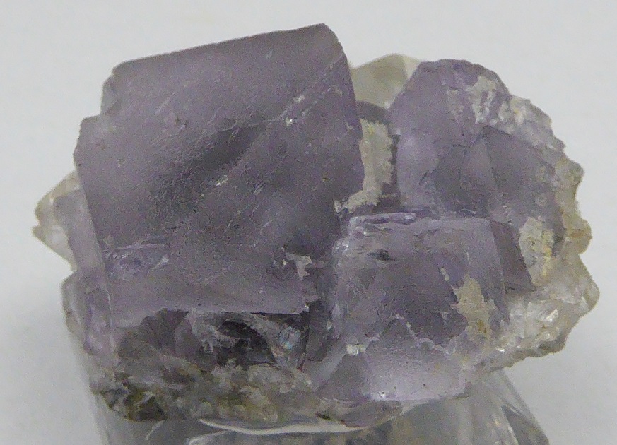 | FLUORITE / Wushan, De’an Co., Jiujiang, Jiangxi, Chine Très belle pièce de fluorite octaèdrique légèrement violine. Le plus gros cristal mesure 2 cm. Il a un petit clivage sur une pointe / 3,5 x 3,2 x 2,5 cm / 55 gr | Disponible |