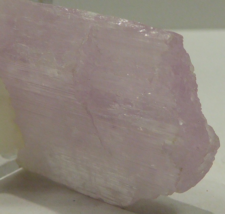 | KUNZITE (variété de spodumène) / Laghman, province du Nuristan, Afghanistan / Magnifique monocristal de kunzite transparent à translucide bien rose-violine. Les faces sont striées et brillantes et montre une bonne terminaison typique pour ce minéral. Livrée sur son socle. | Disponible |