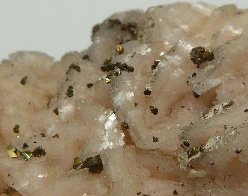 | Description : | Belle pièce de dolomie légèrement rosée cristallisée "en selle" mesurant jusqu'à 0,5 cm associée à des cristaux tétraédriques de chalcopyrite de 0,3 cm pour les plus grands. Certaines arêtes des cristaux de chalcopyrite et de dolomie sont érodées. |