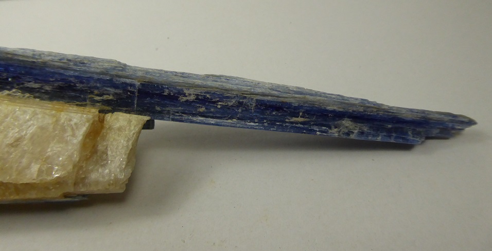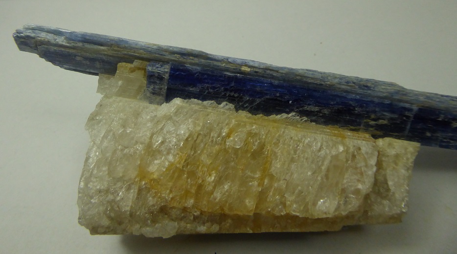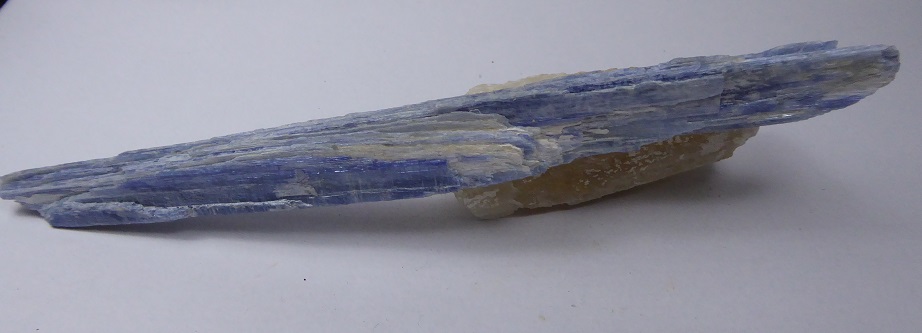 | KYANITE / District de Barra do Salinas, Coronel Murta, Minas Gerais, Brésil / Superbe cristal lamellaire de kyanite d'une belle couleur bleue posée sur du quartz massif. Pièce très esthétique. | Disponible |