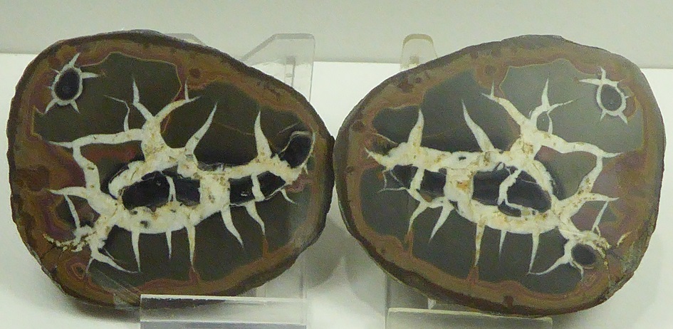 | Description : | Très beau nodule montrant des fissures complètement remplies par de la calcite blanche. |