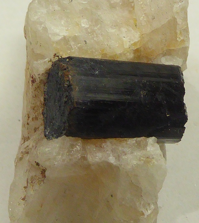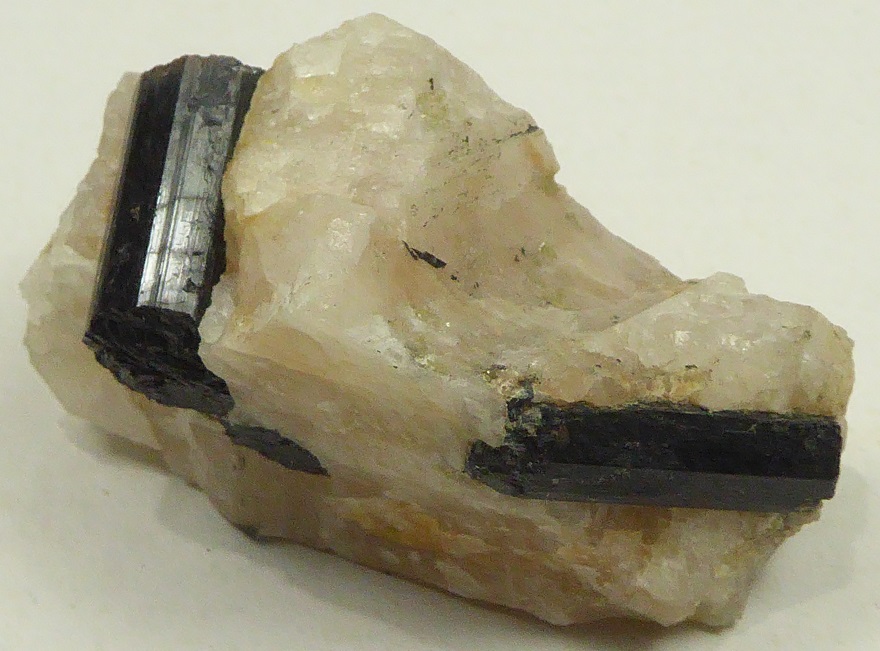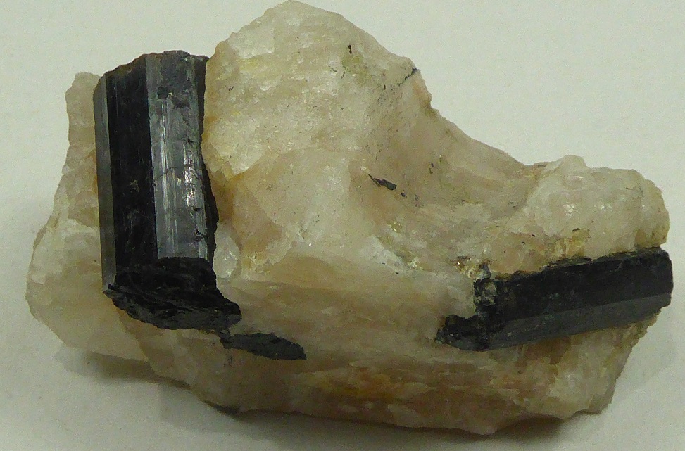 | SCHORLITE / Secteur de Saint-Pierre-la-Bourlhonne, Ambert, Puy-de-Dôme, France / Echantillon intéréssant de tourmaline noite incluse dans du quartz massif. Les cristaux montrent de belles faces brillantes mais ne sont pas terminés. Le plus grand mesure 4,5 cm. | Disponible |