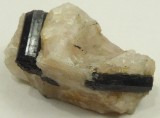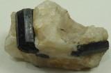 | Description : | Echantillon intéréssant de tourmaline noite incluse dans du quartz massif. Les cristaux montrent de belles faces brillantes mais ne sont pas terminés. Le plus grand mesure 4,5 cm. |