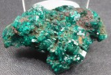 | Description : | Magnifique pièce de dioptase vertes brillantes. Les plus grands cristaux mesurent 2 cm. Livrée sur un socle plexi. Les photos de dioptase sont difficiles à réaliser, et donc le rendu n'est pas à la hauteur de la réel beauté de la pièce. |