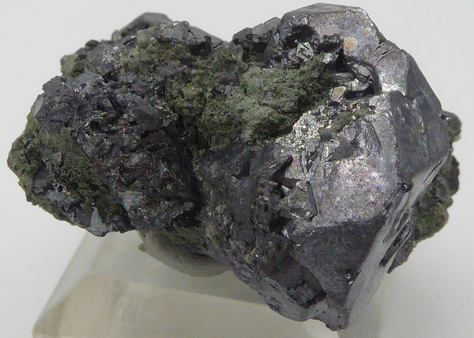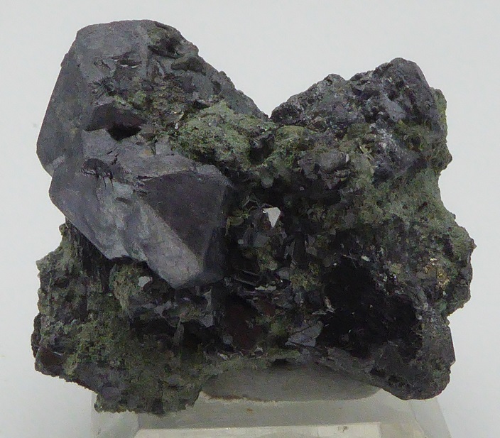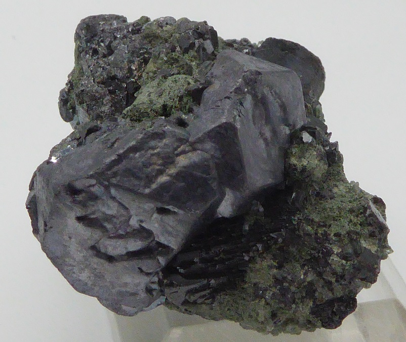| Description : | Très belle pièce de galène dont le plus grand cristal mesure 1,5 cm associée à des petits cristaux de sphalérite noire de 0,3 cm pour les plus grands. |
