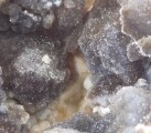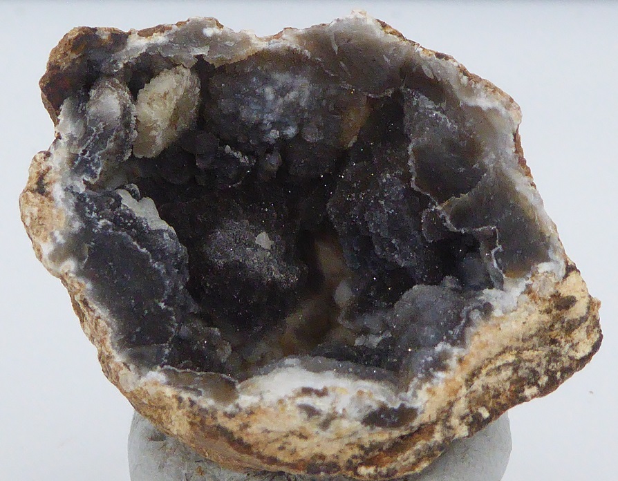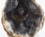 | Description : | Très belle géode de calcédoine mamelonnée noire à blanche recouverte de microcristaux de quartz |