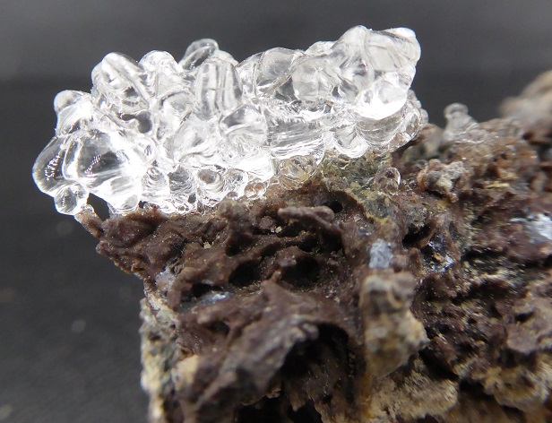 | OPALE-AN (variété Hyalite) / Colline de Hosszú, Megyaszó, district de Szerencs, comté de Borsod-Abaúj-Zemplén, Hongrie / Curieux échantillon de cette opale de la variété Hyalite posée sur de l'andésite. Elle montre une belle fluorescence verte sous les U. V. courts. | Disponible |