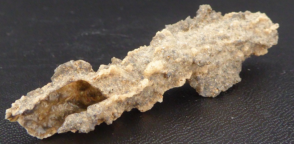 | FULGURITE / Smara, région El Hamra, Maroc / Cette fulgurite est de la silice naturel amorphe. Elle se forme suite à un impact de foudre sur un sol sableux. La puissance de la foudre est estimée à un milliard de Joules et provoque la fonte des matériaux siliceux, ce qui donne un tube creux. | Disponible |