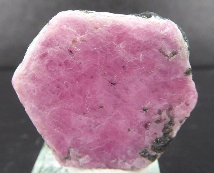 | Description : | Beau cristal de rubis hexagonal, tabulaire et d'une belle couleur rouge. Un peu de phlogopite (mica) se trouve inclus dans le rubis. |