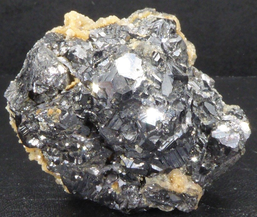 | Description : | Bel agrégat de cristaux noirs de sphalérite. Le cristaux les plus grands mesurent 0,8 cm. Ils sont parfaits et brillants. Un peu de dolomie de couleur brune se trouve sur la sphalérite. |