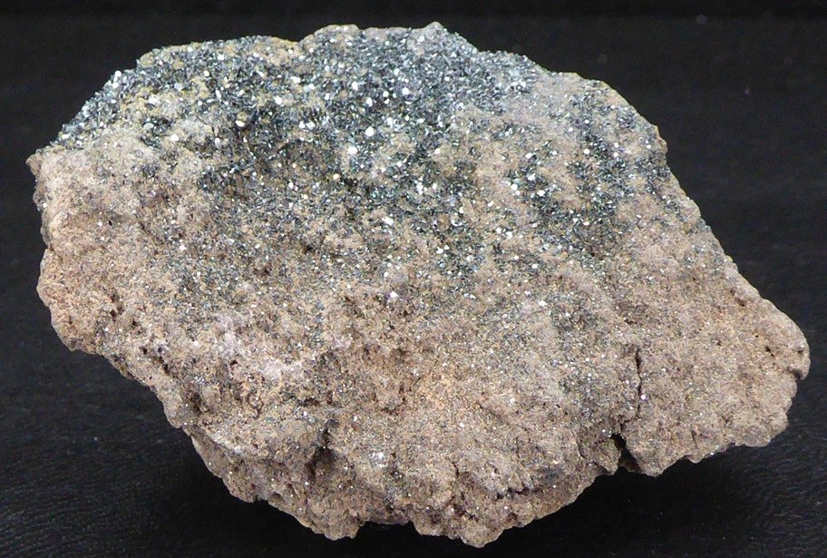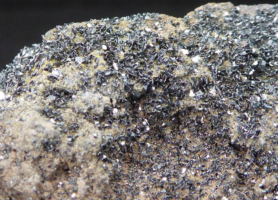 | HEMATITE / Puy de Tunisset, Saint Ours Les Roches, Puy de Dôme, France / Bon échantillon montrant une multitude d'hématite en cristaux noirs brillants et donnant un bel aspect. Les cristaux ne dépasse pas le millimètre. | Disponible |