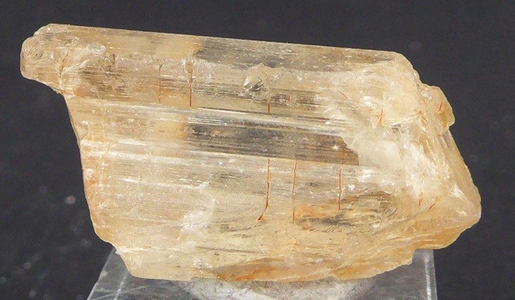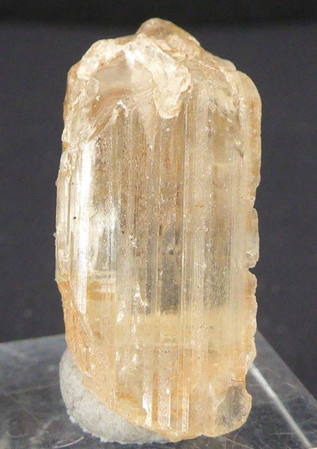 | Rajout Décembre 2025 / SCAPOLITE / Soamatasy, district d'Ihosy, Ihorombe, Madagascar / Bonne pièce de ce rare minéral montrant des faces brillantes et striées. Le cristal est transparent et a une belle couleur jaune dorée. | Disponible |