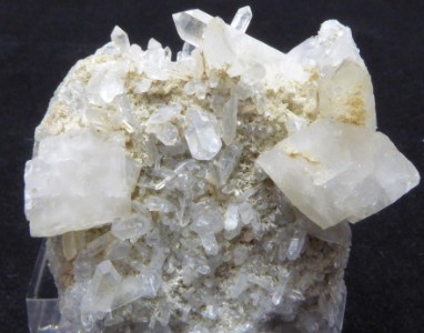 AMETHYSTE / Osilo, province de Sassari, Sardaigne, Italie (Jolie échantillon d'améthyste provenant de Sardaigne. Les cristaux sont légèrement violets. Le plus grand mesure 1,5 cm et il est biterminé. Un cristal est clivé. Livrée sur son socle).