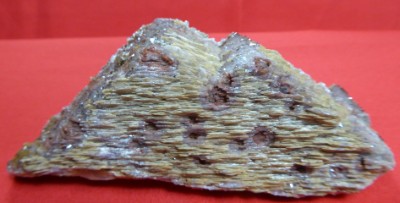 BARYTE, QUARTZ / Secteur minier de Mibladen, Province de Midelt, région de Drâa-Tafilalet, Maroc / Beau monocristal tabulaire de baryte des faces crétées recouvertes par du quartz avec des faces brillantes. Sur une des faces, se trouvent des trous correspondant à un minéral dissout.
