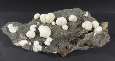 BARYTE / Saint Laurent le Minier, Gard, France / Belle pièce recouverte de baryte à lamelles blanches, formant une intercroissance sphéroïdale. Les plus grandes mesurent 2 cm.