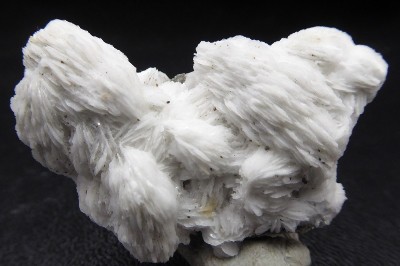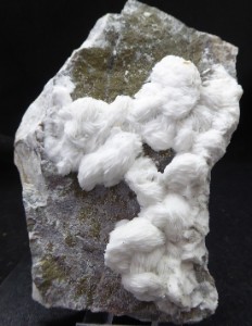 BARYTE / Saint Laurent le Minier, Gard, France / pièce recouverte de baryte à lamelles blanches, formant une intercroissance sphéroïdale. Les plus grandes mesurent 2 cm.