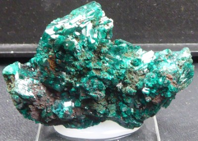 DIOPTASE / Mine Renéville, District de Kindanba, Département de Pool, république du Congo (Brazaville) / Magnifique pièce de dioptase vertes brillantes. Les plus grands cristaux mesurent 2 cm. Livrée sur un socle plexi. Les photos de dioptase sont difficiles à réaliser, et donc le rendu n'est pas à la hauteur de la réel beauté de la pièce.