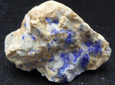 LAZURITE (lapis lazuli) / Ovalle, province de Limari, région de Coquimbo, Chili / Bel échantillon de lazurite massive bleue incluse dans de la calcite. (nommé lapis lazuli) lorsqu'elle est polie.