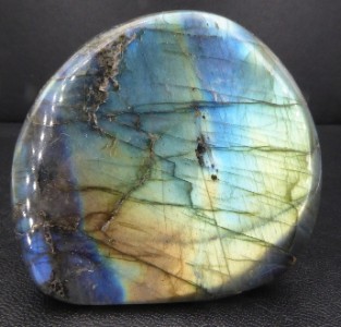 LABRADORITE (variété d’anorthite) / District d’Ampanihy, Province de Tuléar, Madagascar / Superbe labradorite montrant une belle adularescence avec quelques couleurs du spectre dont le vert, le bleu et le jaune.