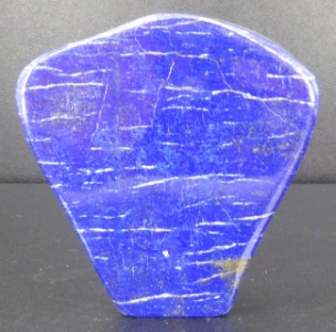 LAPIS-LAZULI ( lazurite) / District de Sar-e-Sang, vallée de Koksha, province du Badakshan, Afghanistan / Superbe pièce polie de lapis-lazuli contenant de la calcite blanche et de la pyrite.