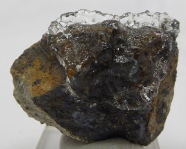 OPALE-AN (variété Hyalite) / Colline de Hosszú, Megyaszó, district de Szerencs, comté de Borsod-Abaúj-Zemplén, Hongrie / Curieux échantillon de cette opale de la variété Hyalite posée sur de l'andésite. Elle montre une belle fluorescence verte sous les U. V. courts.