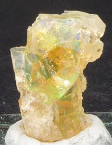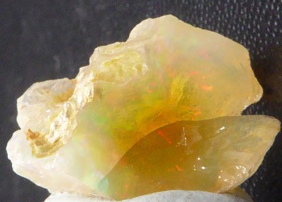 OPALE / Wegel Tena, Secteur sud de Wollo, Région d'Amhara, Ethiopie / Jolie opale montrant de belles irrisations rouges, vertes et jaunes. Livrée sur son socle.