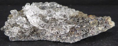 OPALE (variété Hyalite) / Tarcal, Monts Zemplén, Borsod-Abauj-Zemplén Co., Hongrie / Belle pièce de cette rare variété d'opale nommée Hyalite. La cristallisation est curieuse (botryoïdal globuleuse) et transparente. Elle montre une forte fluorescence verte sous les U. V. courts.
